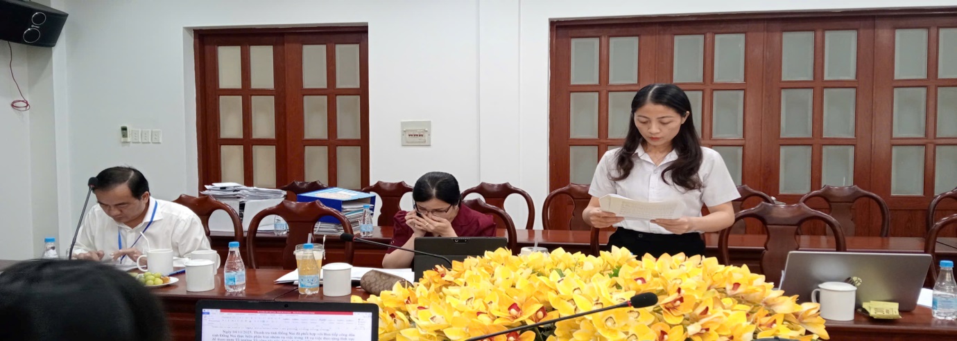Đại diện UBND phường Trấn Biên trình bày nội dung liên quan đến công tác tiếp công dân, xử lý đơn