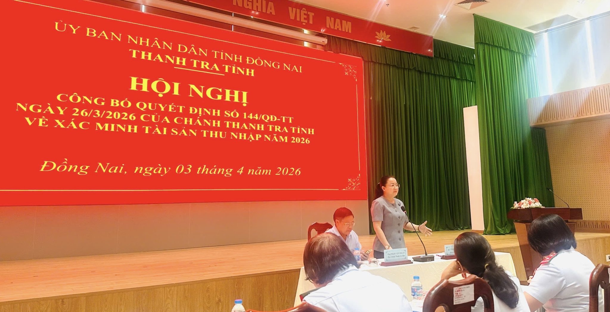<p style="text-align:justify;">Sáng ngày 03/4/2026, Thanh tra tỉnh Đồng Nai đã tổ chức công bố Quyết định số 144/QĐ-TT ngày 26/3/2026 về việc xác minh tài sản, thu nhập năm 2026 đối với người có nghĩa vụ kê khai tài sản, thu nhập công tác tại các cơ quan, đơn vị trên địa bàn tỉnh; <span style="color:black;">nhằm đánh giá tính chính xác, trung thực, rõ ràng nội dung kê khai tài sản, thu nhập của người có nghĩa vụ kê khai,</span> góp phần nâng cao hiệu quả kiểm soát tài sản, thu nhập, phòng ngừa tham nhũng.</p><p style="text-align:justify;"><img src="https://thanhtra.dongnai.gov.vn/uploads/thanhtra/news/2026_04/image_8.jpeg" width="1431" height="1214" /></p><p style="text-align:center;"><i>Bà Nguyễn Bảo Thuận - Trưởng phòng Nghiệp vụ 2 - Tổ phó Thường trực Tổ xác minh công bố toàn văn Quyết định số 144/QĐ-TT ngày 26/3/2026 của Chánh Thanh tra tỉnh.</i></p><p style="text-align:justify;">Theo đó, việc xác minh được triển khai đối với 232 cá nhân thuộc 30 cơ quan, đơn vị, bao gồm các sở, UBND cấp phường, xã, đơn vị sự nghiệp và doanh nghiệp có vốn nhà nước. Nội dung xác minh tập trung vào việc kiểm tra tính trung thực, đầy đủ, rõ ràng của bản kê khai tài sản, thu nhập; tính trung thực trong việc giải trình về nguồn gốc của tài sản, thu nhập tăng thêm; thời kỳ xác minh là năm 2024 và năm 2025.</p><p style="text-align:justify;"><img src="https://thanhtra.dongnai.gov.vn/uploads/thanhtra/news/2026_04/image_7.jpeg" width="1429" height="674" /></p><p style="text-align:center;"><i>Toàn cảnh buổi công bố Quyết định về việc xác minh tài sản, thu nhập năm 2026</i></p><p style="text-align:justify;">Để tổ chức thực hiện hiệu quả, Thanh tra tỉnh đã thành lập Tổ xác minh tài sản, thu nhập gồm các công chức có năng lực, kinh nghiệm, do đồng chí Phạm Văn Thuấn - Phó chánh Thanh tra tỉnh làm Tổ trưởng. Tổ xác minh có trách nhiệm triển khai xác minh theo đúng quy định của Luật Phòng, chống tham nhũng năm 2018 và các văn bản hướng dẫn thi hành; bảo đảm <span style="color:black;">công khai</span>, khách quan, trung thực, chính xác.</p><p style="text-align:justify;"><img src="https://thanhtra.dongnai.gov.vn/uploads/thanhtra/news/2026_04/image_6.jpeg" width="2047" height="1047" /></p><p style="text-align:center;"><i>Bà Võ Thị Xuân Đào - Chánh Thanh tra tỉnh phát biểu chỉ đạo tại Hội nghị</i></p><p style="text-align:justify;">Việc xác minh tài sản, thu nhập không chỉ là yêu cầu pháp lý mà còn là giải pháp quan trọng nhằm phòng ngừa tham nhũng từ sớm, từ xa. Thông qua hoạt động này, các cơ quan chức năng kịp thời phát hiện, xử lý các trường hợp kê khai không trung thực, góp phần siết chặt kỷ luật, kỷ cương trong đội ngũ cán bộ, công chức, viên chức. Bên cạnh đó, hoạt động xác minh còn góp phần nâng cao ý thức tự giác, trách nhiệm của người có nghĩa vụ kê khai tài sản, thu nhập.</p><p style="text-align:justify;">Trong thời gian tới, Thanh tra tỉnh sẽ tiếp tục tăng cường công tác kiểm soát tài sản, thu nhập, đẩy mạnh công tác thanh tra, kiểm tra và xử lý nghiêm các hành vi vi phạm. Qua đó góp phần xây dựng nền hành chính công khai, minh bạch, liêm chính, vì sự phát triển bền vững của địa phương.</p><p style="text-align:right;"><i>Tác giả: Ngọc - Phòng Nghiệp vụ 2</i></p>